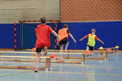 - Koordination: einfache koordinative Übungen z. B. Sprungfolgen, Rolle auf Kasten